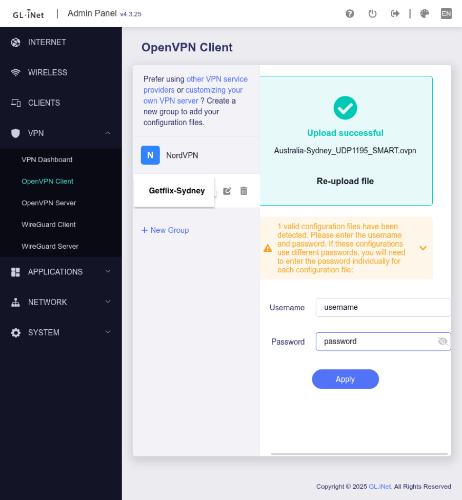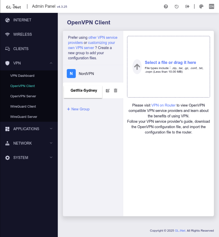 VPN Setup for GL.iNet Router - OpenVPN Client